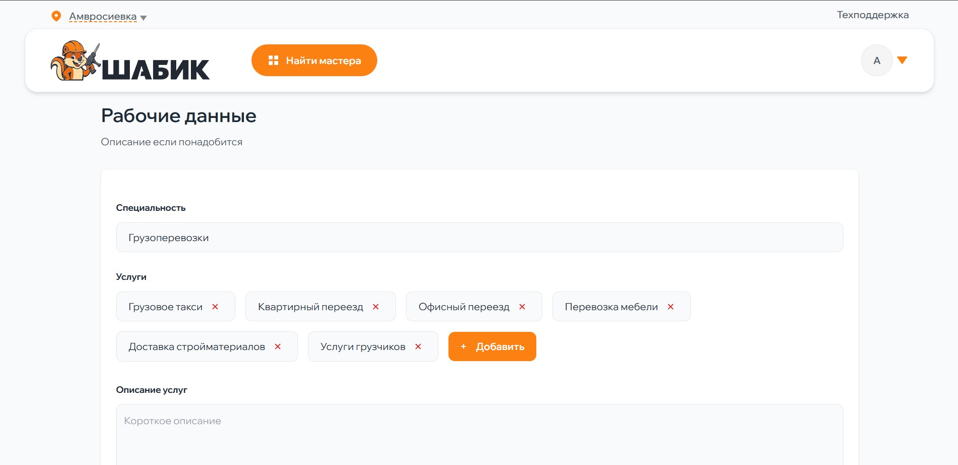 Перед нами стояла задача создать онлайн-платформу для связи мастеров различных специальностей с потенциальными заказчиками. Основные требования включали: